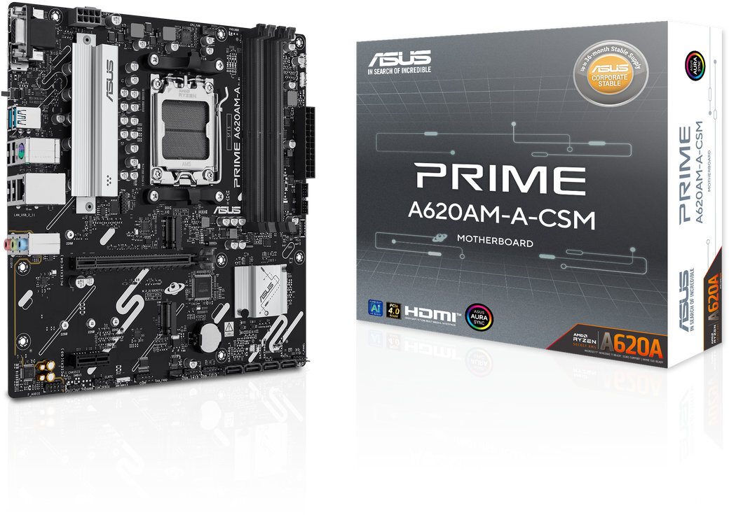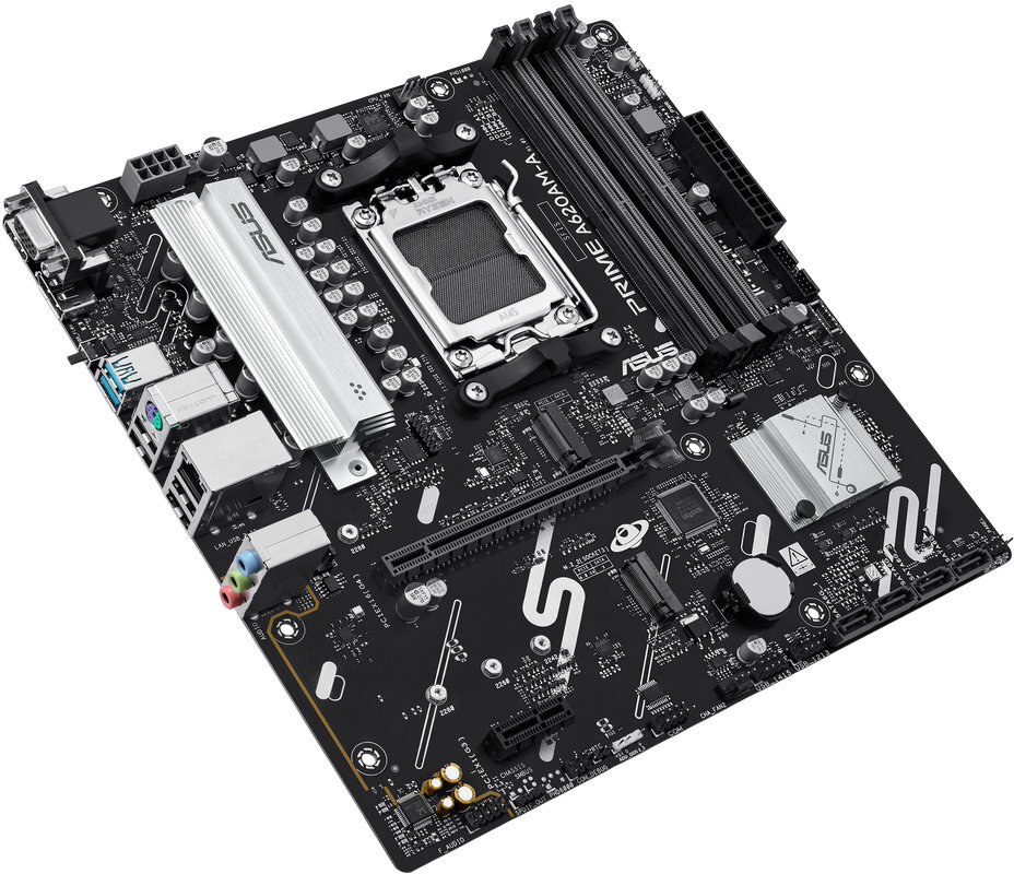 Het ASUS PRIME A620AM-A-CSM moederbord is een micro-ATX bord voor AMD Ryzen 7000, 8000 en 9000 serie processors met AM5 socket. Het ondersteunt dual-channel DDR5-geheugen tot 256 GB en kloksnelheden tot 7600 MHz via overklok. Met 4 SATA III-poorten, twee M.2 slots en meerdere PCIe-sloten biedt het uitgebreide uitbreidingsmogelijkheden. Achteraan zijn HDMI, DisplayPort en VGA aanwezig, samen met USB 2.0 en 3.2 poorten en een 1 Gbit Ethernet-poort. De geïntegreerde 7.1-kanaals audio met Realtek-chip maakt dit bord geschikt voor kantoor- en thuisopstellingen.