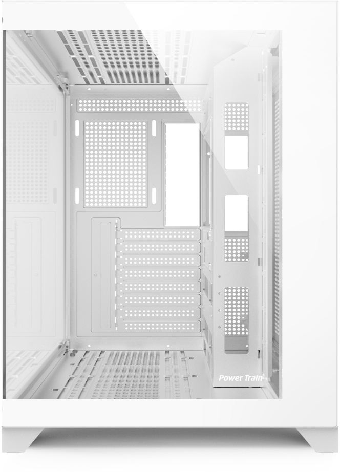 De POWER TRAIN GC361100W is een stijlvolle witte miditower pc-behuizing die kracht en elegantie combineert. Gemaakt van duurzaam 0,6 mm staal met een gehard glazen zijpaneel, biedt deze kast een moderne uitstraling en voldoende ruimte voor ATX-, Micro-ATX- en Mini-ITX-moederborden. Met ondersteuning voor grafische kaarten tot 40 cm en CPU-koelers tot 17,5 cm hoog is hij ideaal voor krachtige builds. De behuizing ondersteunt meerdere ventilatorconfiguraties voor optimale luchtstroom en koeling. Perfect voor gamers en pc-bouwers die een strakke, functionele en uitbreidbare behuizing zoeken.